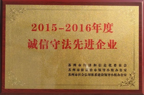 2018年4月24日,開信精工獲得由蘇州市經(jīng)濟(jì)和信息化委員會、蘇州市依法治市領(lǐng)導(dǎo)小組辦公室、蘇州市社會信用體系建設(shè)領(lǐng)導(dǎo)小組聯(lián)合頒發(fā)的“誠信守法先進(jìn)企業(yè)”銅牌。